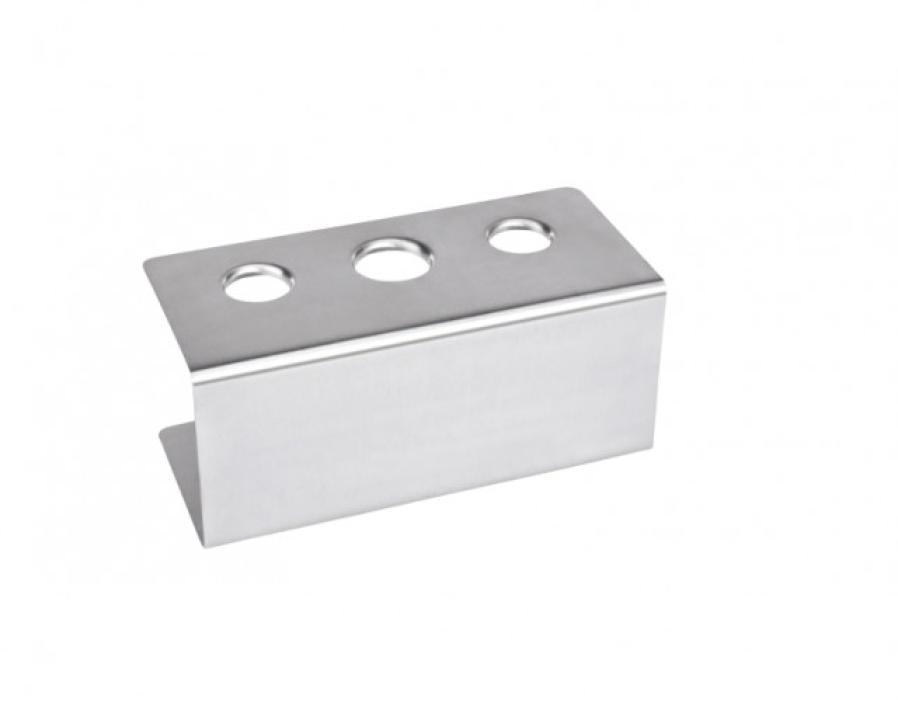 Prezinta-ti cu stil si eleganta conurile de inghetata, in asteptarea servirii, cu acest suport profesional din inox! Conceput pentru a sustine in siguranta 3 conuri de inghetata, acest suport are 2 gauri cu diametrul de 2.6 cm si o gaura cu diametrul de 3.1 cm, fiind versatil pentru diferite dimensiuni de conuri. Cu dimensiuni compacte de 20 cm lungime, 9,5 cm latime si 8,5 cm inaltime, este un accesoriu esential pentru orice gelaterie, cafenea, cofetarie sau stand de inghetata.